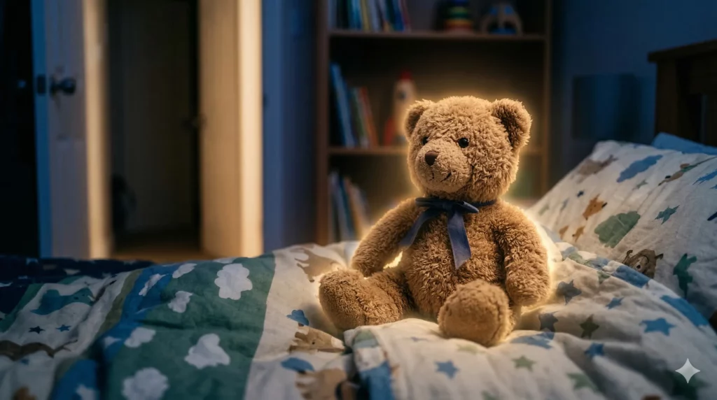 L’enfant a besoin d’un transfert de sécurité. Valorisez son doudou préféré ou l’animal de compagnie de la famille. Donnez-leur un « rôle officiel » de gardien de la nuit. Le cerveau de l’enfant est extrêmement réceptif à ces métaphores. S’il est persuadé que son doudou détient un pouvoir de protection, votre présence devient moins indispensable.